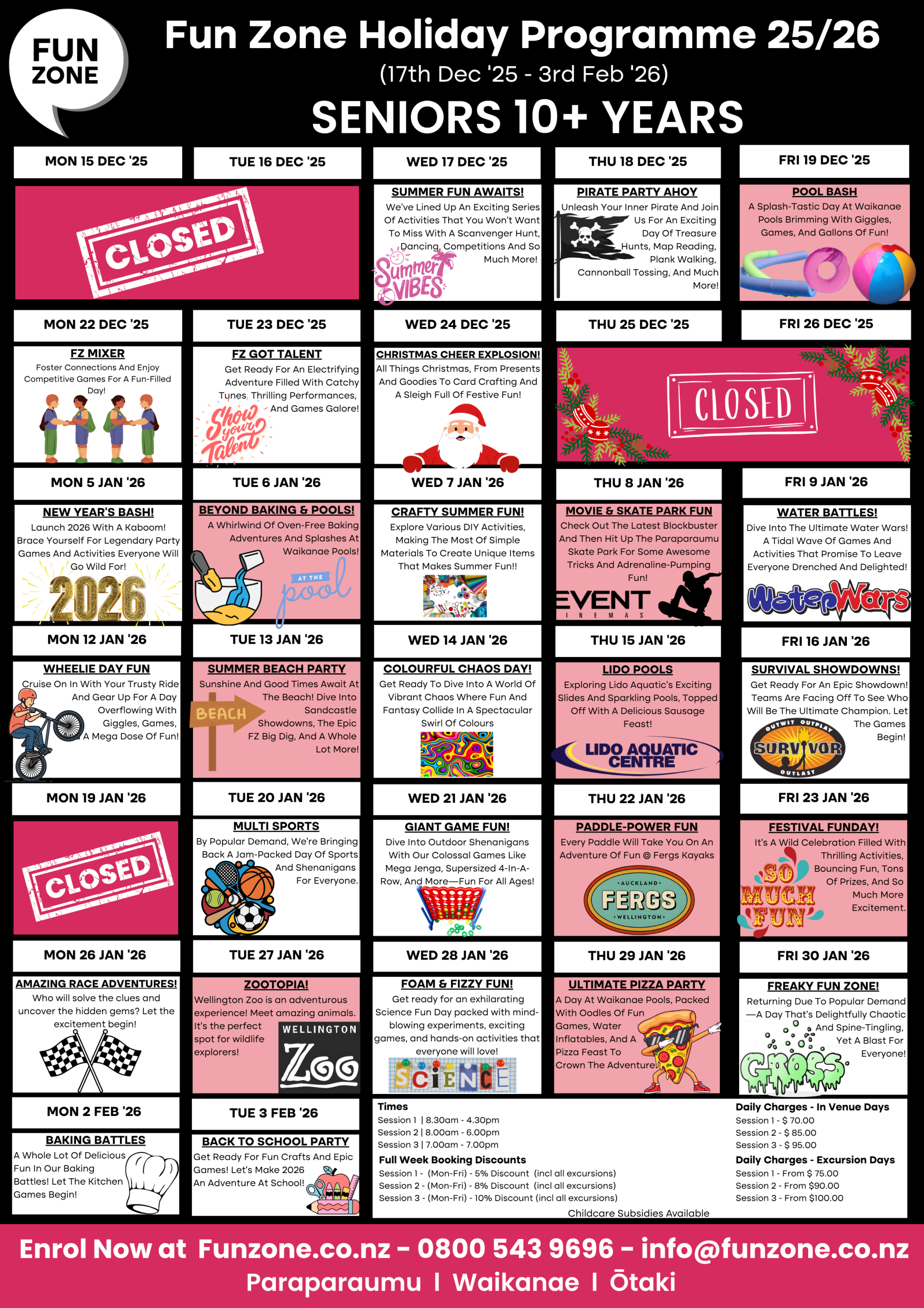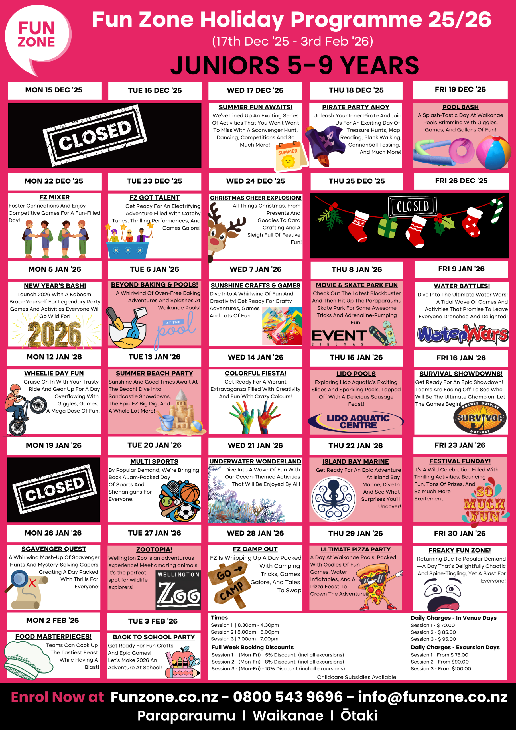 For more information contact our friendly team today on 0800 FUN ZONE (386 9663) or via email at info@funzone.co.nz.
